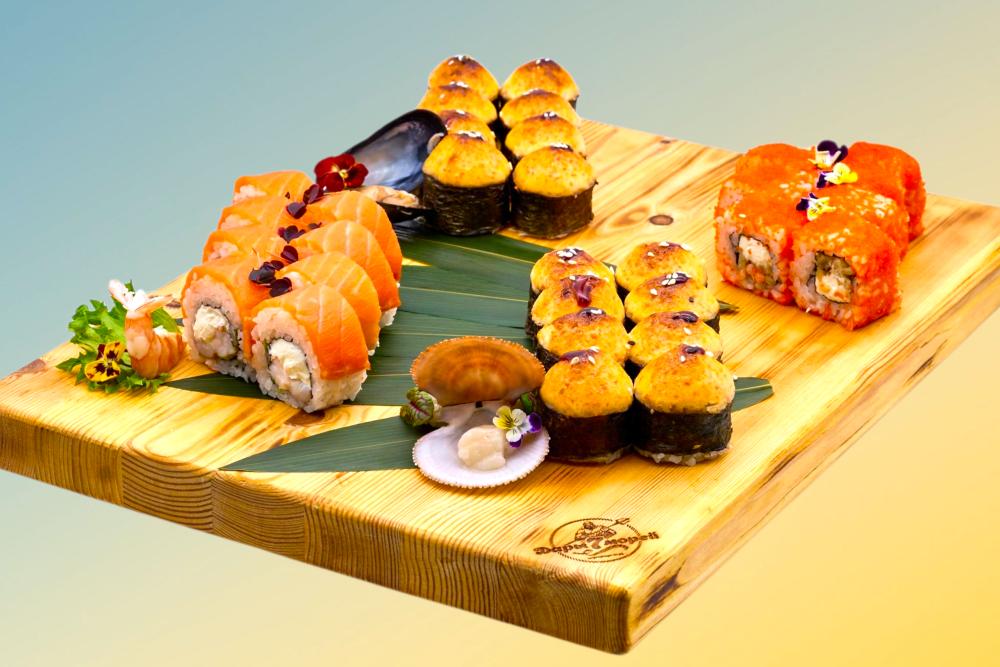 Запечённый ролл с Мидиями - сырный авторский соус, нори, восхитительный рис, натуральный сыр, филе мидии - 260 гр. (возможно содержание морских песчинок в филе мидии!)